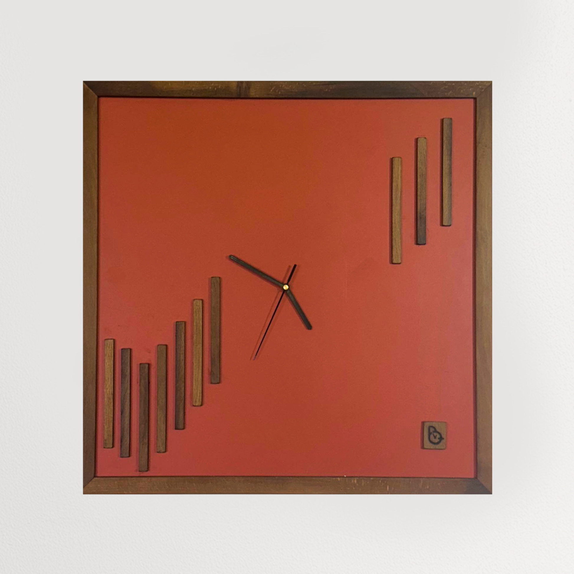 Battito – Orologio da Parete Artigianale in Legno Rosso Vintage e Quercia Antica | Design Contemporaneo